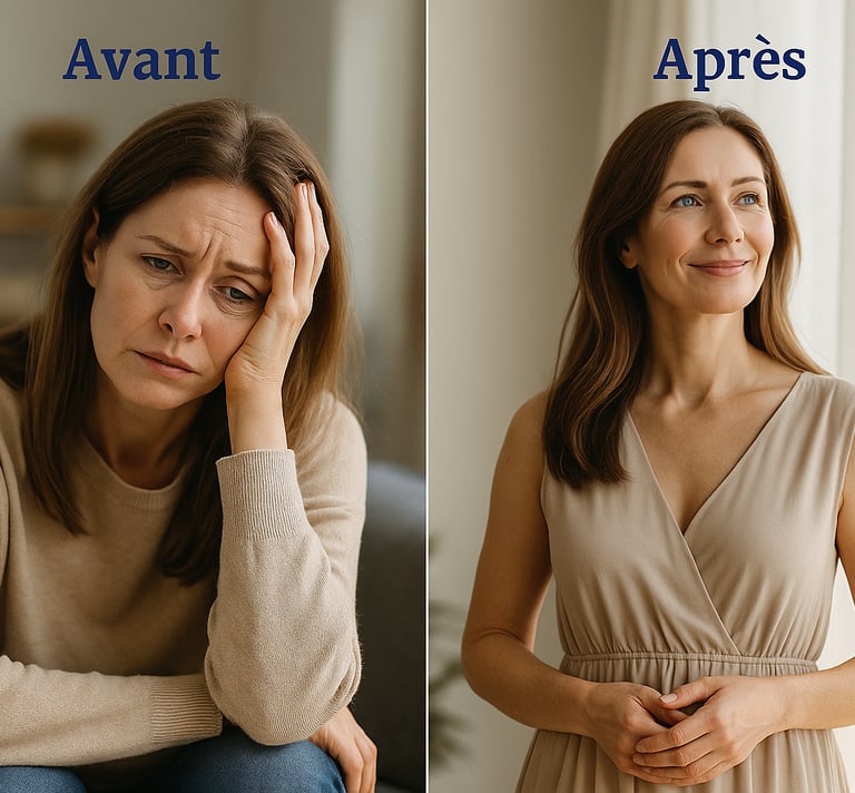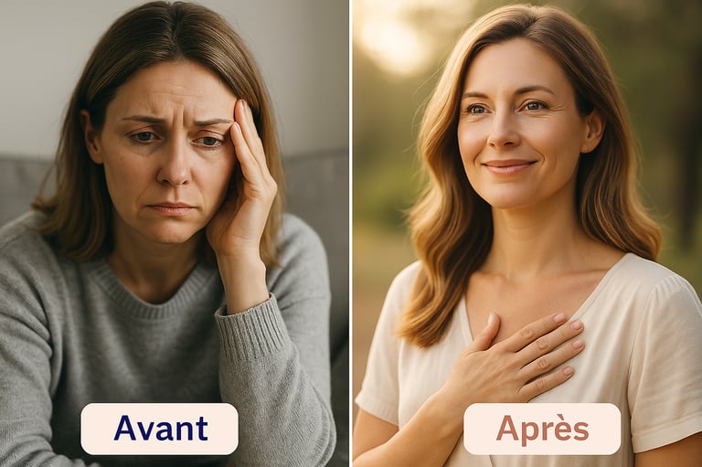 Mes clientes retrouvent une stabilite emotionnelle, une energie nouvelle et un vrai alignement interieur.